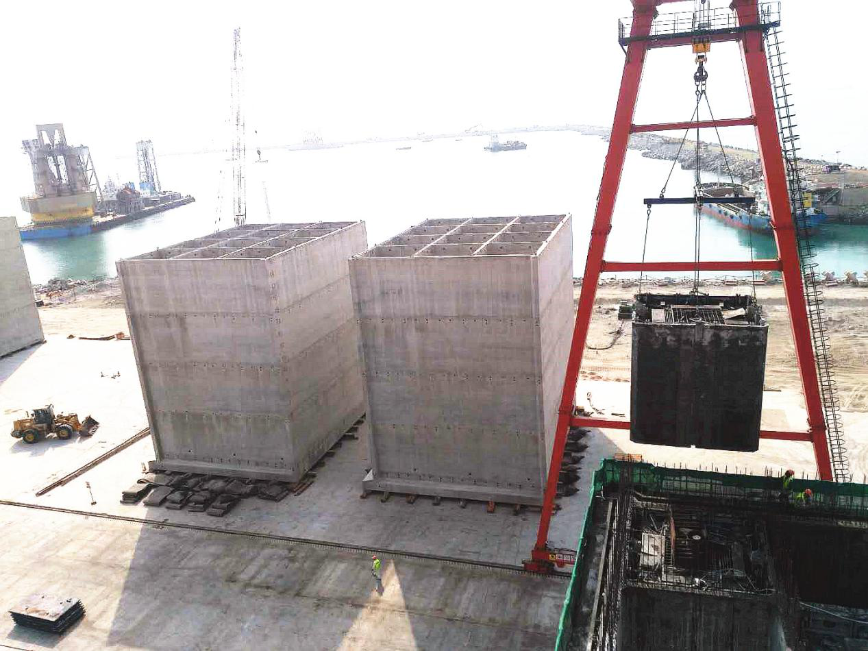 項(xiàng)目主要是建造4個(gè)總長為1400米深15 萬噸級(jí)集裝箱碼頭泊位、一條3558米的防波堤及近 130 公頃的陸域吹填及相關(guān)疏浚工作,以容納先進(jìn)的港口裝卸設(shè)備和大型船舶,建成后將給特碼港提供四個(gè)深水泊位,全長1.4公里的碼頭,每個(gè)深水泊位同時(shí)配備精密的集裝箱操作起重機(jī)和碼頭作業(yè)系統(tǒng)。它的容量將達(dá)到普通集裝箱碼頭的四倍左右,同時(shí)具備裝卸世界上最大的集裝箱船的實(shí)力。
