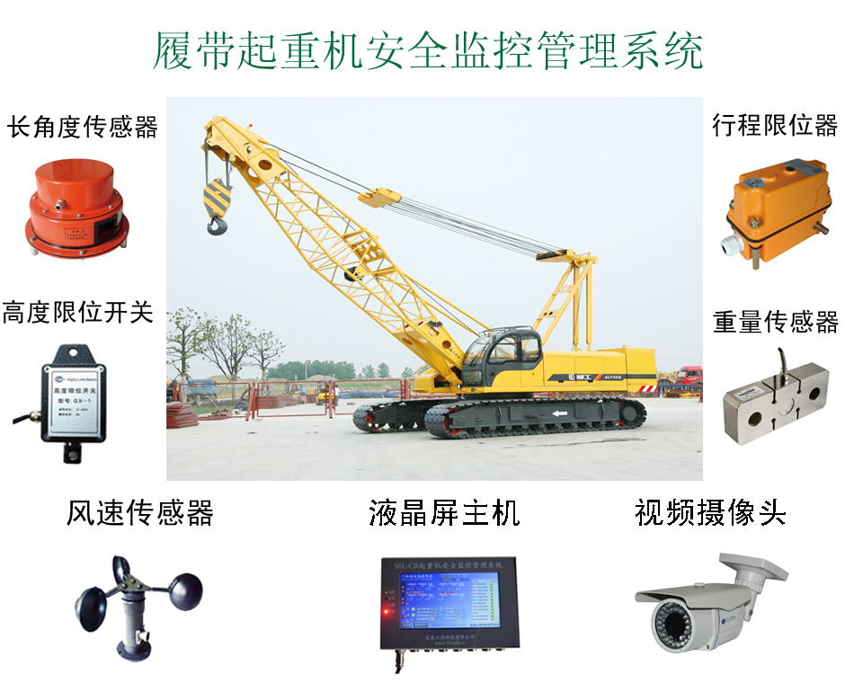 履帶吊力矩限制器主要采用主繩取力或變幅取力。主繩取力傳感器安裝于臂桿頭部,直接測(cè)量載荷;變幅取力傳感器安裝于變幅繩上。通過(guò)測(cè)量變幅拉力計(jì)算起吊載荷。變幅繩采樣方式的算法復(fù)雜,但使用維護(hù)方便,不影響主繩的更換維修。