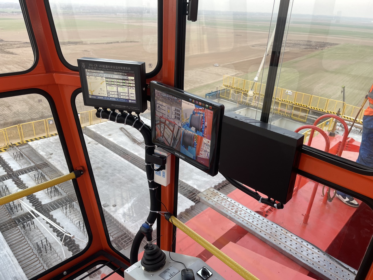 視頻監(jiān)控系統(tǒng)監(jiān)測(cè)桅桿吊的起升卷?yè)P(yáng)、變幅卷?yè)P(yáng)、吊裝區(qū)域,視頻顯示器放置于駕駛室中,給駕駛員帶來(lái)更加寬廣的操作視野,提高了桅桿吊操作便捷性。
