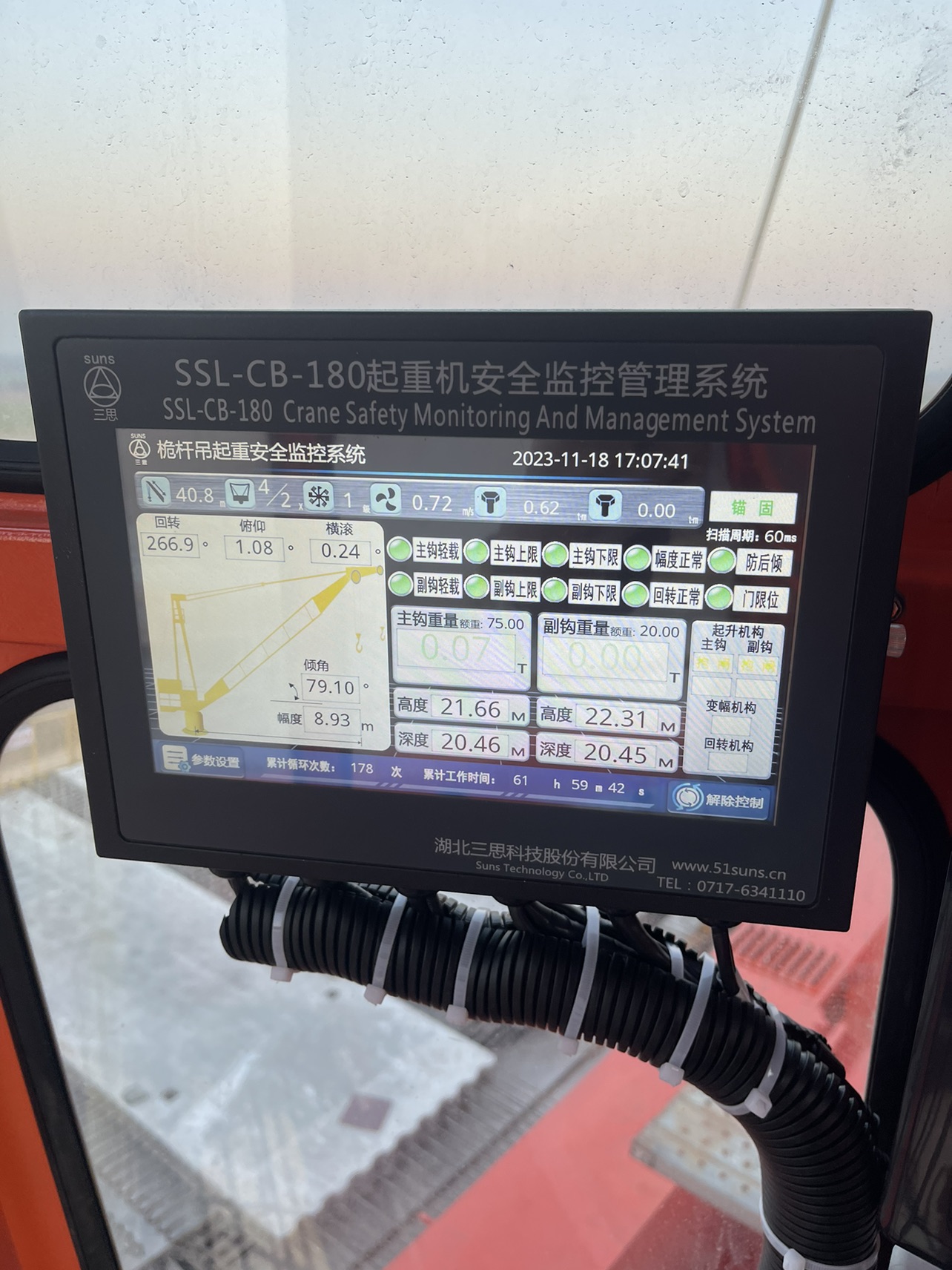 安全監(jiān)控系統(tǒng)監(jiān)測(cè)桅桿吊的變幅數(shù)據(jù),起升高度數(shù)據(jù),限位數(shù)據(jù),操作指令數(shù)據(jù)以及輸出控制點(diǎn)位,可以讓駕駛員全方位掌握桅桿吊的實(shí)時(shí)運(yùn)行狀況,提高了操作的安全性。