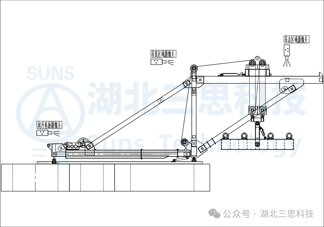 視頻監(jiān)控系統(tǒng)監(jiān)測橋面吊的卷揚(yáng)狀態(tài)、吊點(diǎn)區(qū)域、吊裝區(qū)域,視頻顯示器放置于駕駛室中或者主機(jī)電箱內(nèi),給駕駛員帶來更加寬廣的操作視野,提高了橋面吊操作便捷性。