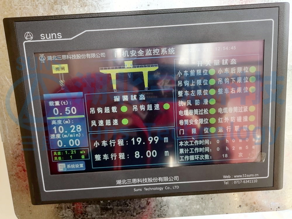 2023年4月4日,由湖北三思科技承接的湖北現(xiàn)場(chǎng)龍門吊安全監(jiān)控管理系統(tǒng)通過工程驗(yàn)收并正式交付使用。本次方案使用的是湖北三思科技自主研發(fā)的SSL-CB型門機(jī)安全監(jiān)控管理系統(tǒng)。